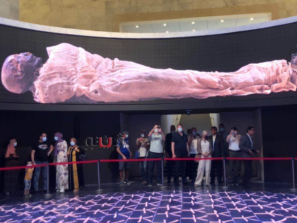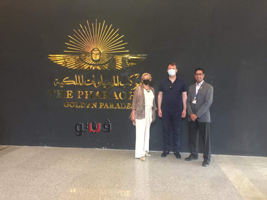 وحرص أعضاء الوفد على التقاط الصور التذكارية لهم أمام اللوحات الدعائية الخاصة بموكب المومياوات الملكية والتي احتفظ بها المتحف تخليدا لهذه الاحتفالية الاستثنائية التي جذبت جميع دول العالم في الـ ٣ أبريل الماضي.