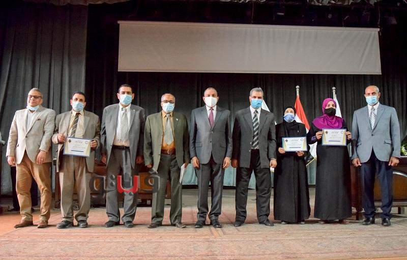 والعاملين الذين تم تكريمهم هم: مها محمد فتحى كلية الطب البيطري، وماجدة محمود عبد العال كلية الآداب، وامال سيد معوض كلية العلوم، ومحمود حلمي محمد إدارة الجامعة، وسعيد شاكر فهمي كلية الحاسبات والمعلومات، وهشام الدين يوسف كلية الطب البيطري، ومحمد عبد الستار علواني كلية الطب البشري.