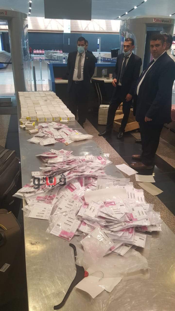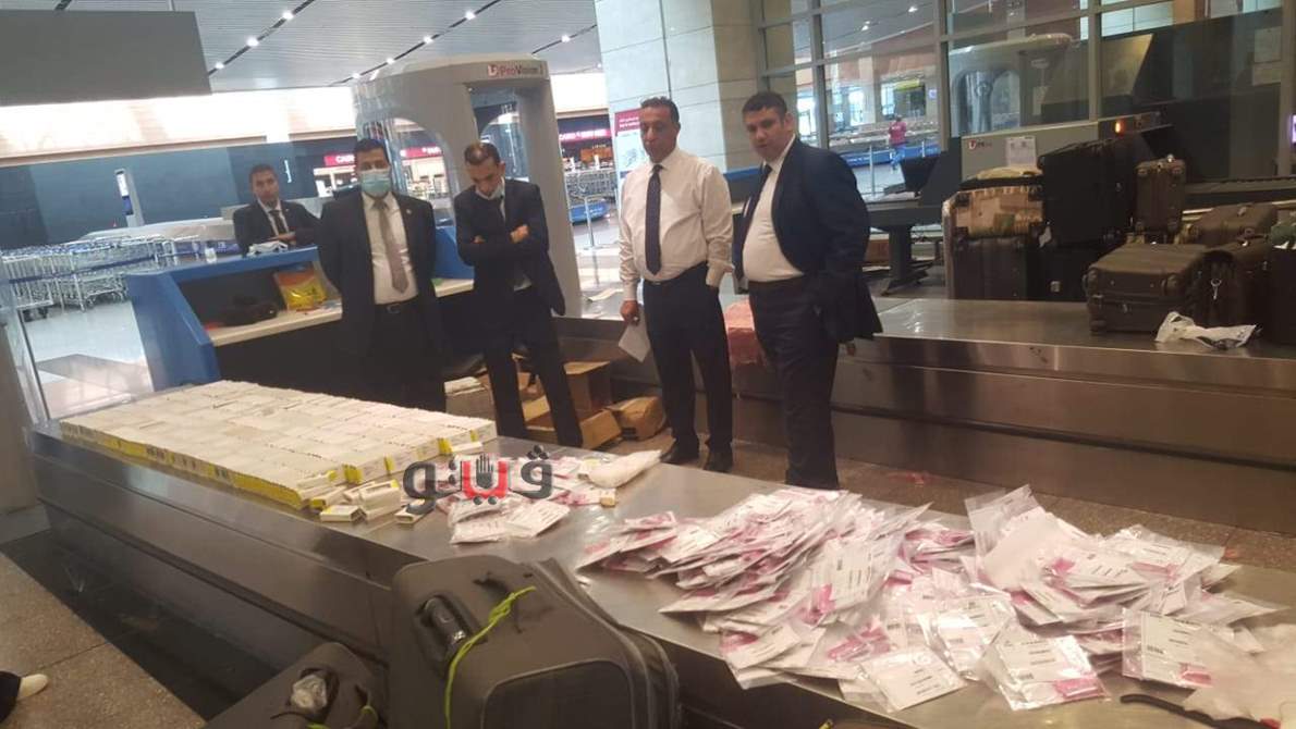 وقالت مصادر جمركية بالمطار، إنه أثناء إنهاء الإجراءات الجمركية على ركاب الطائرة السعودية القادمة من أبها، استوقف عبد السلام عادل عبد السلام رئيس القسم المعين علي لجنة الخط الأخضر، أحد الركاب أثناء محاولته الخروج من بوابة اللجنة الجمركية والذي انكر حوزته لما يجب الإفصاح عنه أو ما يستحق عنه رسوما وضرائب جمركية، وقام عمرو عبد العزيز العميري مدير الحركة المشرف علي صالة الوصول بمبنى الركاب رقم 2، بمناظرة جواز سفر الراكب وحقائبه وطلب تفتيشها على جهاز الفحص بالأشعة « X-ray» بواسطة كل من أحمد محمد البحيري مأمور الجمرك، وطاهر محمود طاهر رئيس القسم، فتلاحظ لهما وجود أجسام تكرارية معتمة ومتماثلة بكثافة عالية.
