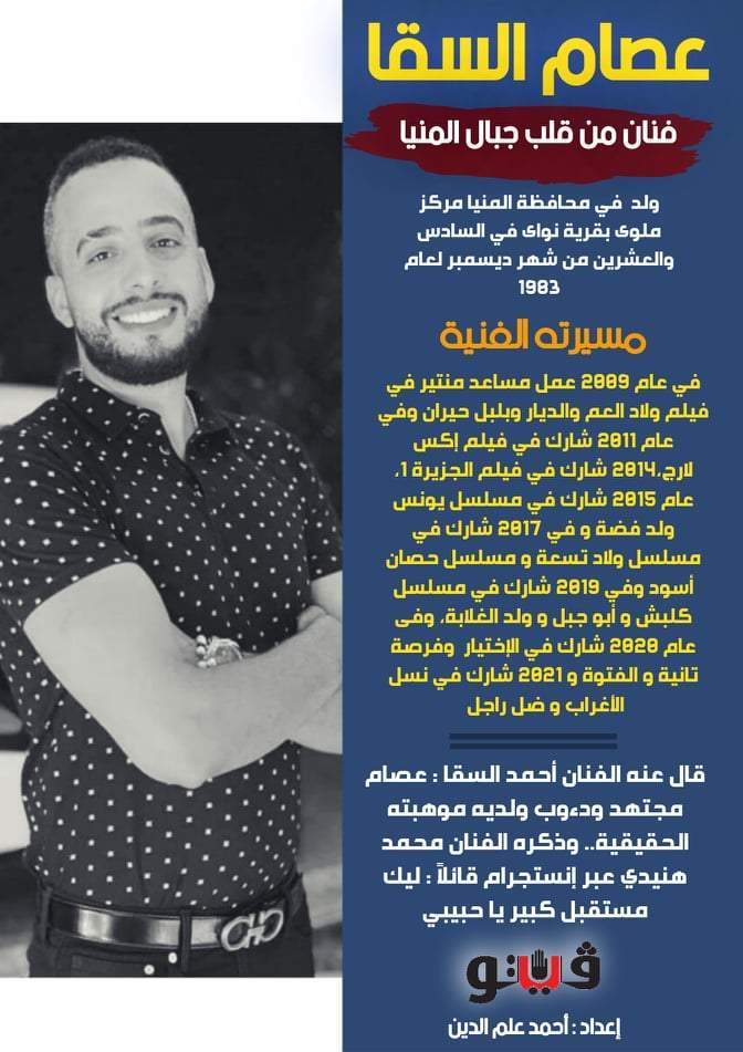 قرية نواي تلك القرية التابعة إدارياً لمركز ومدينة ملوي، الواقعة جنوبي محافظة المنيا.. هنا ولد الفنان عصام عيسى المشهور بـ عصام السقا، ذاك الفنان الذي لفت به أنظار متابعي السوشيال ميديا، في السنوات الأخيرة وجعله حديث وسائل التواصل الاجتماعي.