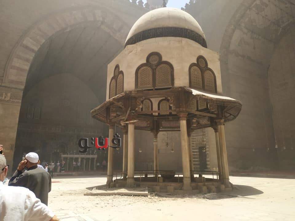 وكان رواد موقع التواصل الاجتماعي "فيس بوك" المهتمين بالآثار الإسلامية تداولوا عددا من الصور التي توضح انهيار جزء من نافورة أو ميضأة مسجد السلطان حسن الأثري، مؤكدين وجود شروخ في جسم الأواوين الخاصة بالمسجد- على حد تعبيرهم.