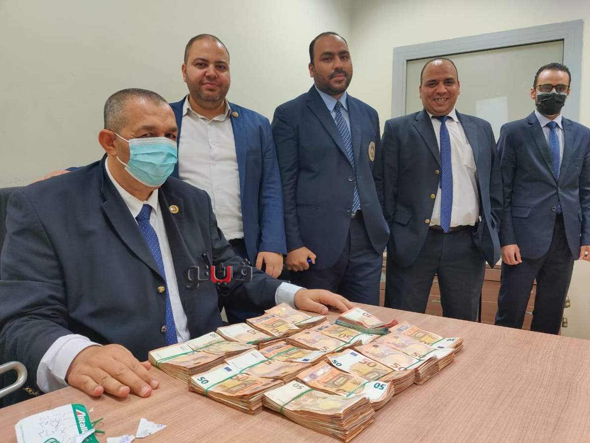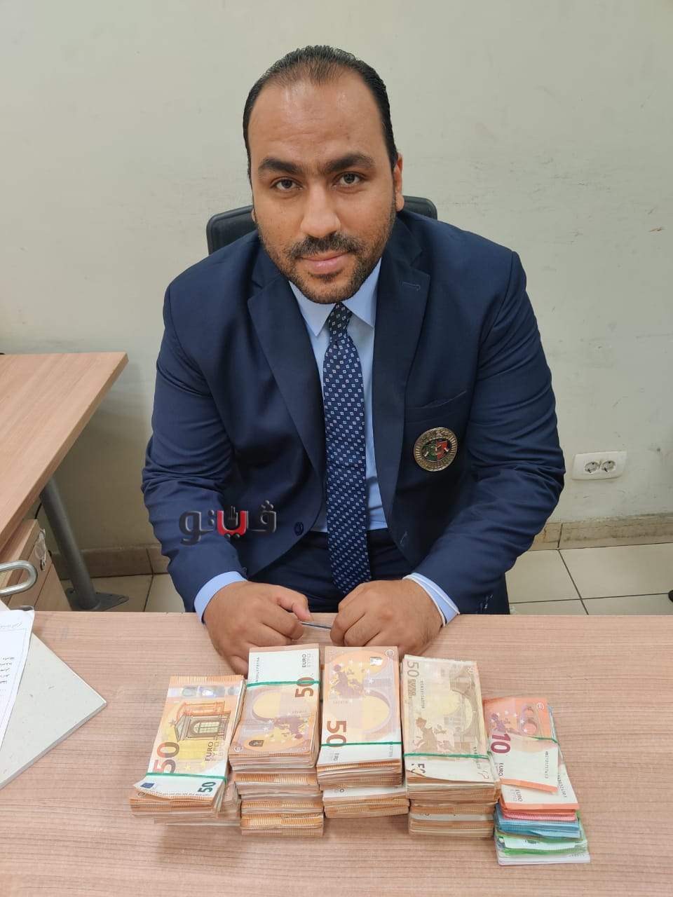 قام مصطفي محمود المشنب مدير الحركة المشرف علي صالة الوصول بمبنى الركاب رقم 2 بتكليف وليد جمال حسن مأمور الجمرك بتفتيش حقائب الراكب يدويا مما أسفر عن وجود مجموعة من لفافات مخبأة أسفل قاع وفي جوانب إحدى الحقائب وبفتح إحداها وجد رزمة من عملة اليورو قام أحمد عبد الهادي مدير إدارة الجمرك بتكليف كل من وليد جمال وعبد الرحمن محمود الصياد بعد وجرد المضبوطات والتي بلغت 88 ألفا وتسعمائة وأربعين يورو.