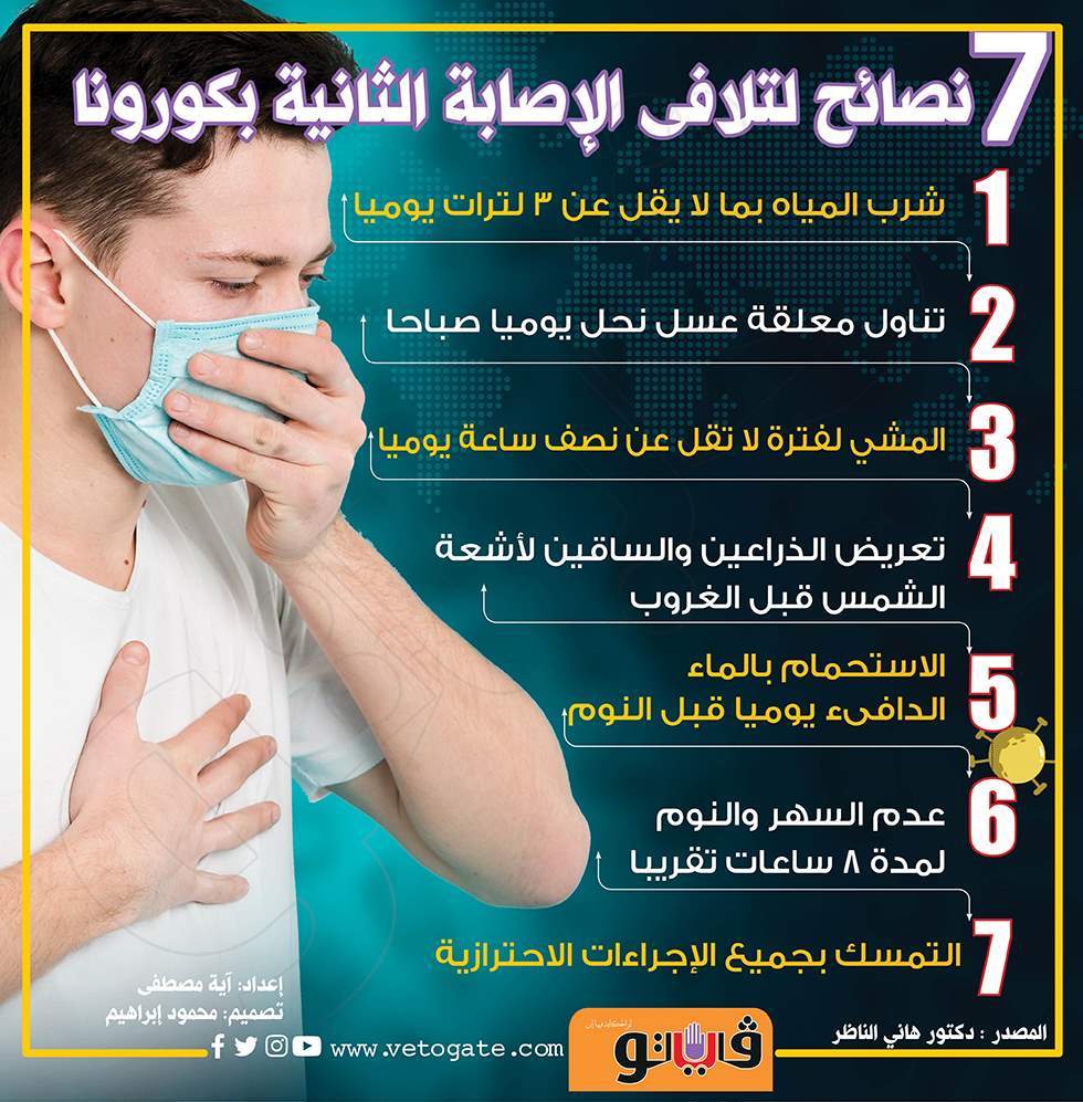 7 نصائح لتلافي الإصابة الثانية بكورونا | إنفوجراف السبت 29/مايو/2021 - 01:31 م 5/29/2021 1:31:54 PM فيروس كورونا آية مصطفى شارك طباعة 18 حجم الخط شارك طباعة فيروس كورونا المتعافين من كورونا كوفيد-19