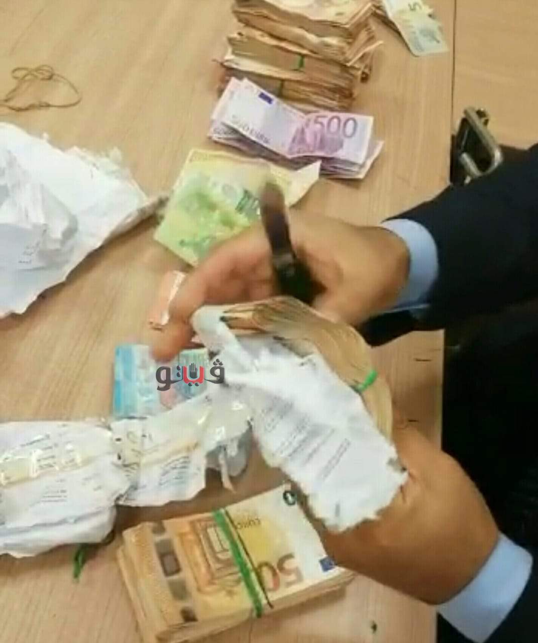وبالعرض على مصطفى المشنب مدير الحركة المشرف علي صالة الوصول، قرر تكليف وليد جمال حسن مأمور الجمرك، بتفتيش حقائب الراكب، فتبين وجود مجموعة من اللفافات مخبأة أسفل قاع وفي جوانب احدي الحقائب، وبفتح إحداها تبين أن بداخلها رزمة من عملة اليورو، قام أحمد عبد الهادي مدير ادارة الجمرك، بتكليف كل من وليد جمال وعبد الرحمن محمود الصياد بعد وجرد المضبوطات وبلغت 88 الف و940 يورو