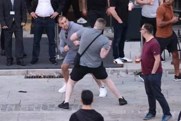 ودخل جمهور الفريقين في شجار بالأيدي والكراسي أمام أحد المطاعم قبل إقامة المباراة المرتقبة التي تجمع الناديين الإنجليزيين.