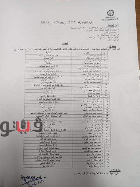 وكان رئيس جامعة بني سويف، أعلن، في بيان سابق، عن صدور قرار بقيام عدد من القيادات الإدارية بأعمال مديري الكليات والوحدات ذات الطابع الخاص.