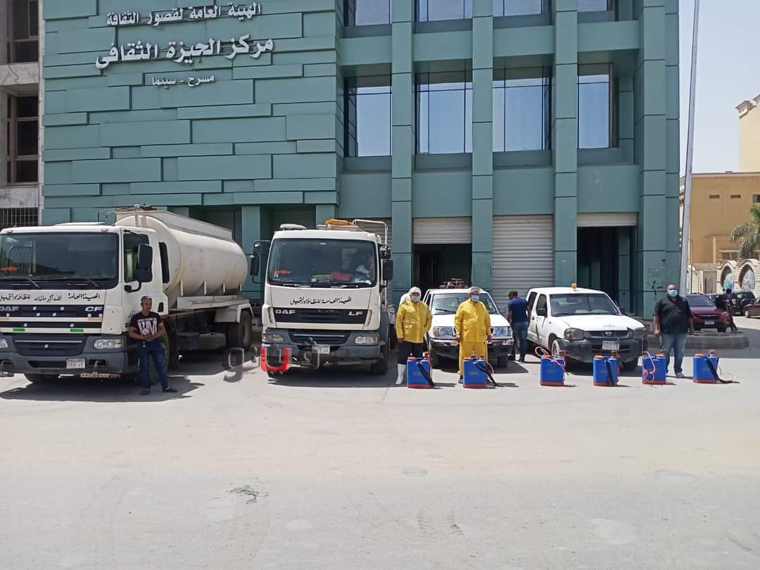 تطهير مستشفى أم المصريين وقصر الثقافة بالجيزة وأسواق الجملة | صور