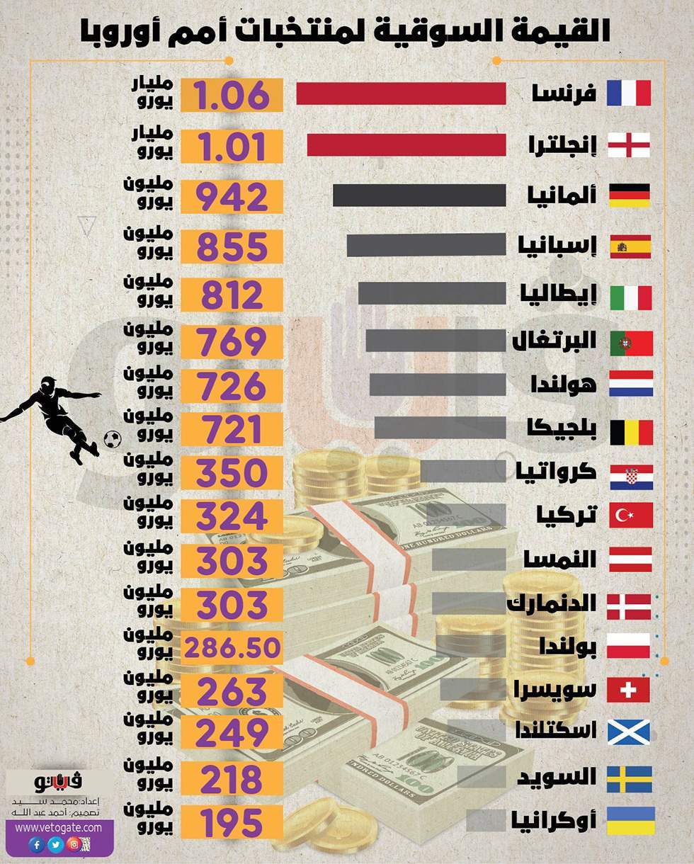 القيمة السوقية لمنتخبات كأس أمم أوروبا | إنفوجراف