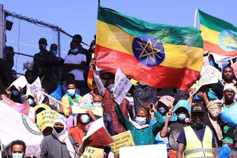 شهدت العاصمة الإثيوبية أديس أبابا الأحد، تجمعات كبيرة للاحتجاج على فرض الولايات المتحدة قيوداً على المساعدات الاقتصادية والعسكرية على خلفية النزاع في تيجراي المستمر منذ 6 أشهر.