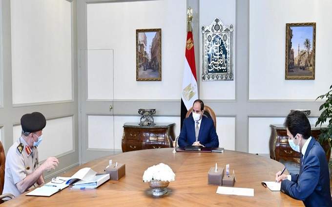 وقال السفير بسام راضي المتحدث الرسمي باسم رئاسة الجمهورية بأن الاجتماع تناول "متابعة المشروعات الخاصة بجهاز مشروعات الخدمة الوطنية في عدد من القطاعات على مستوى الدولة".