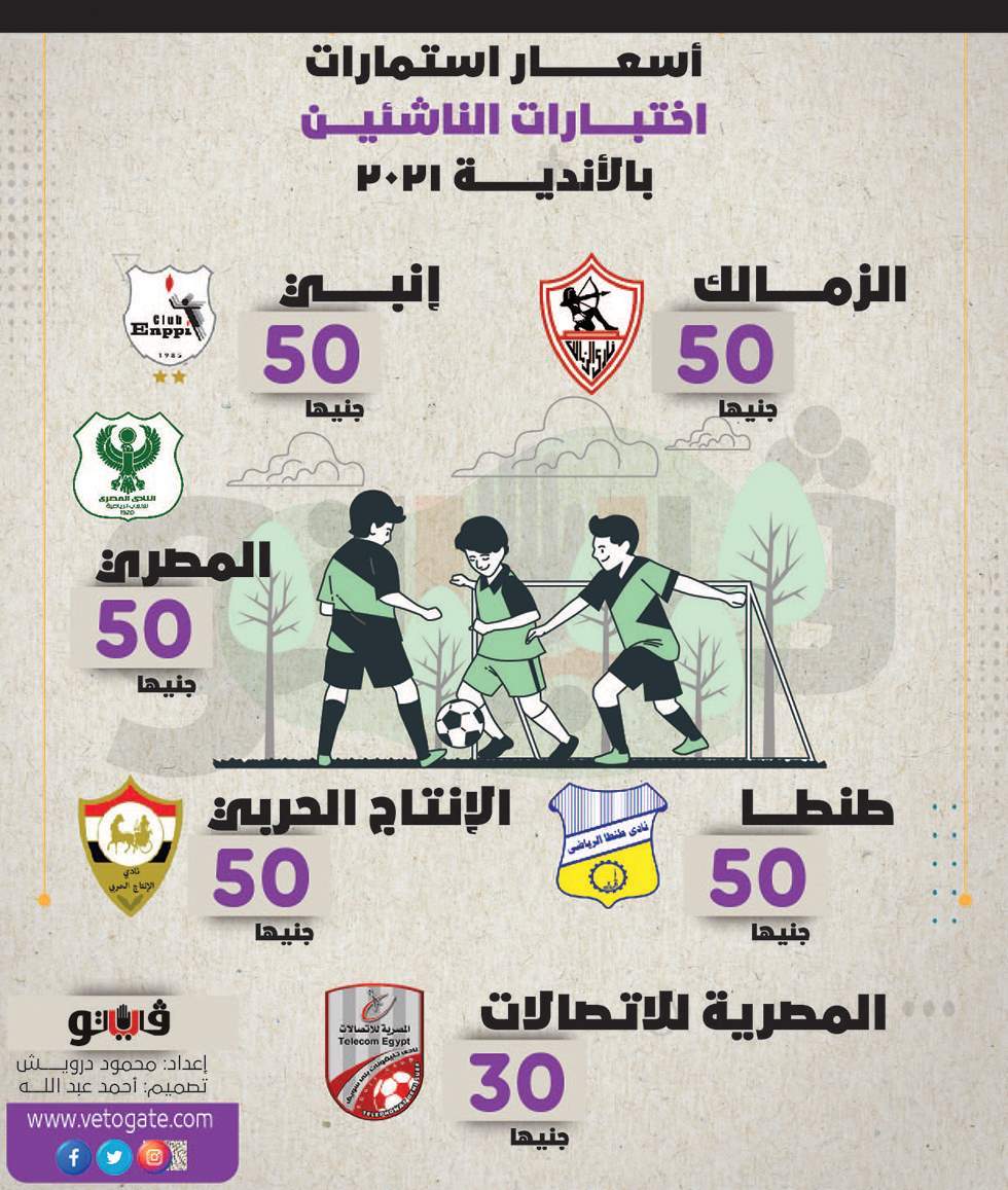 أسعار استمارات اختبارات الناشئين بالأندية 2021 | إنفوجراف