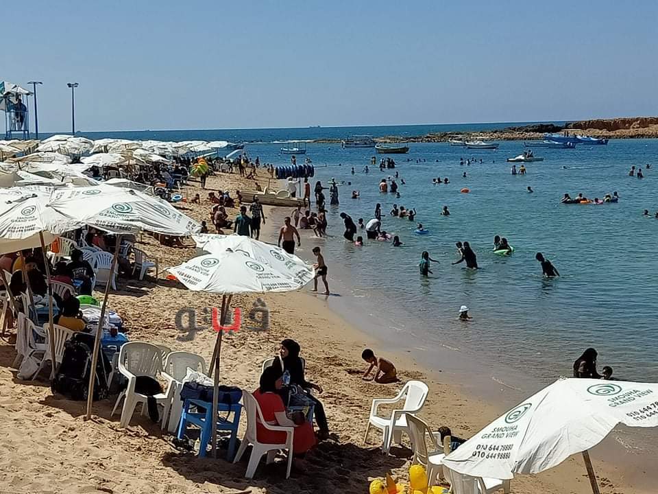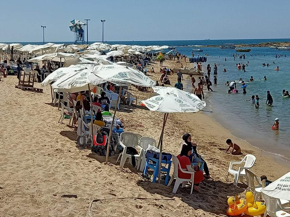 ولجأ اهالي المحافظة والمصطافين لكورنيش البحر وبعض الشواطى الخاصة والمحانية للهروب من اشعه الشمس وارتفاع درجات الحرارة.