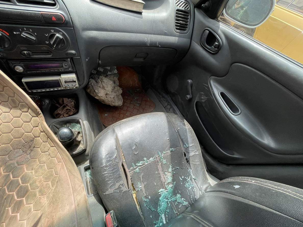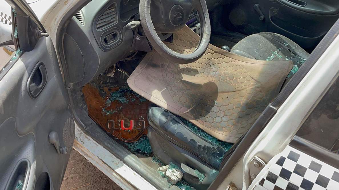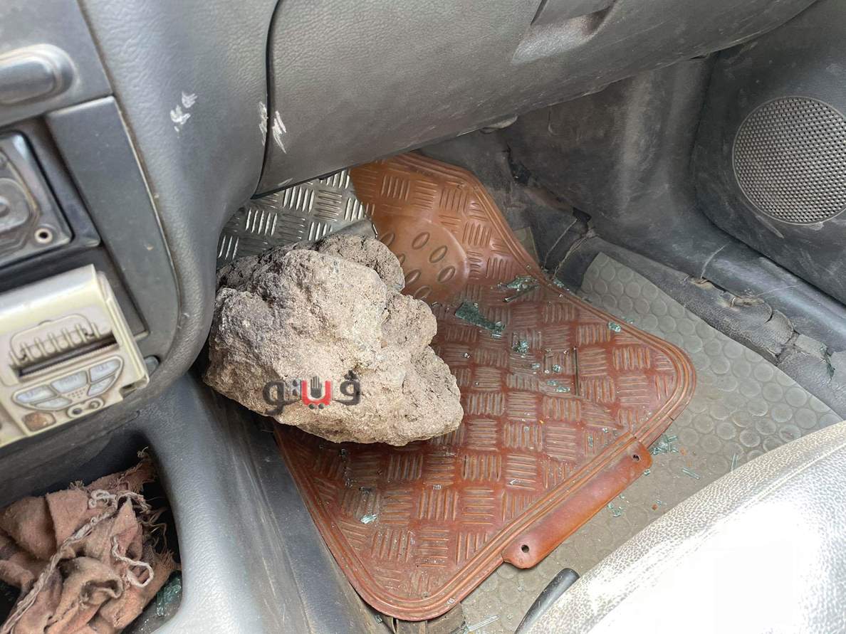 وقال السائق:" نسيبي اتصل بيا قال لي الحق في حريق بالمخزن وجيت لقيت العربية مدمرة و12 عربية مدمرين بالجراج، واللوادر جت شلتهم، ولقيت جوه عربيتي صخرة كبيرة".
