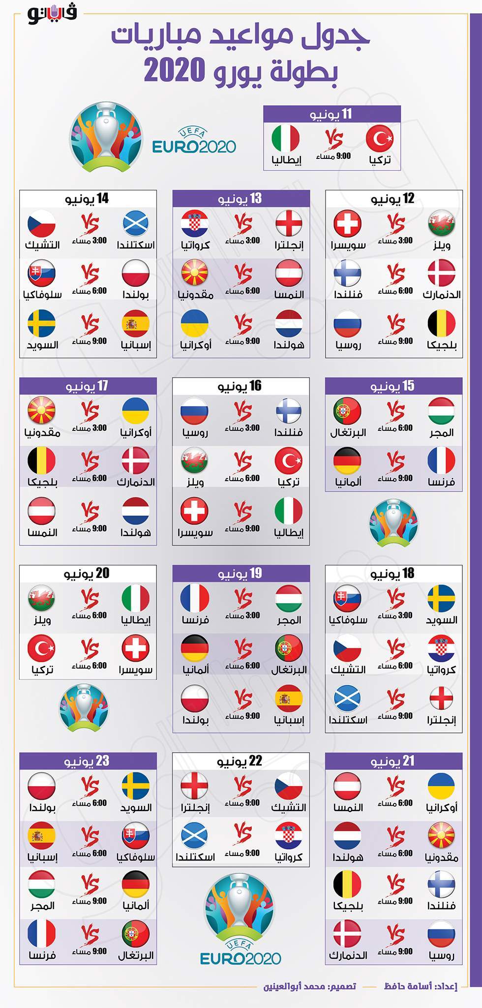 مباريات قوية بين كبار أوروبا.. جدول مباريات بطولة يورو 2020 | إنفوجراف
