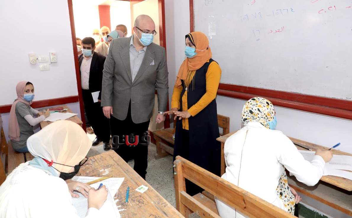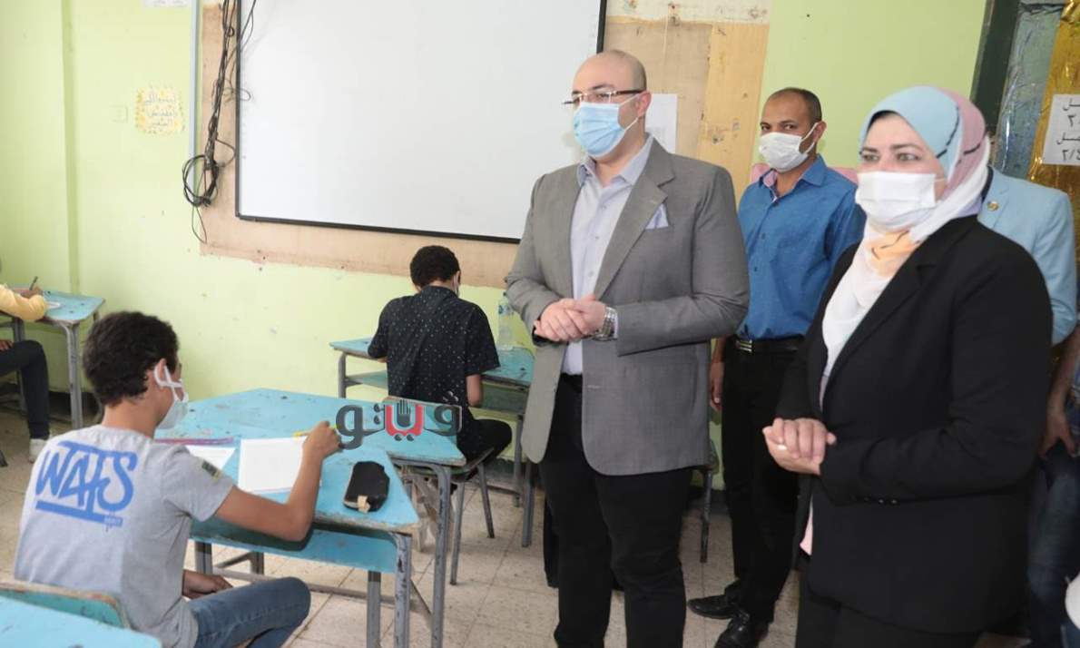 محافظ بني سويف يراجع الالتزام بإجراءات كورونا بلجان امتحانات الإعدادية