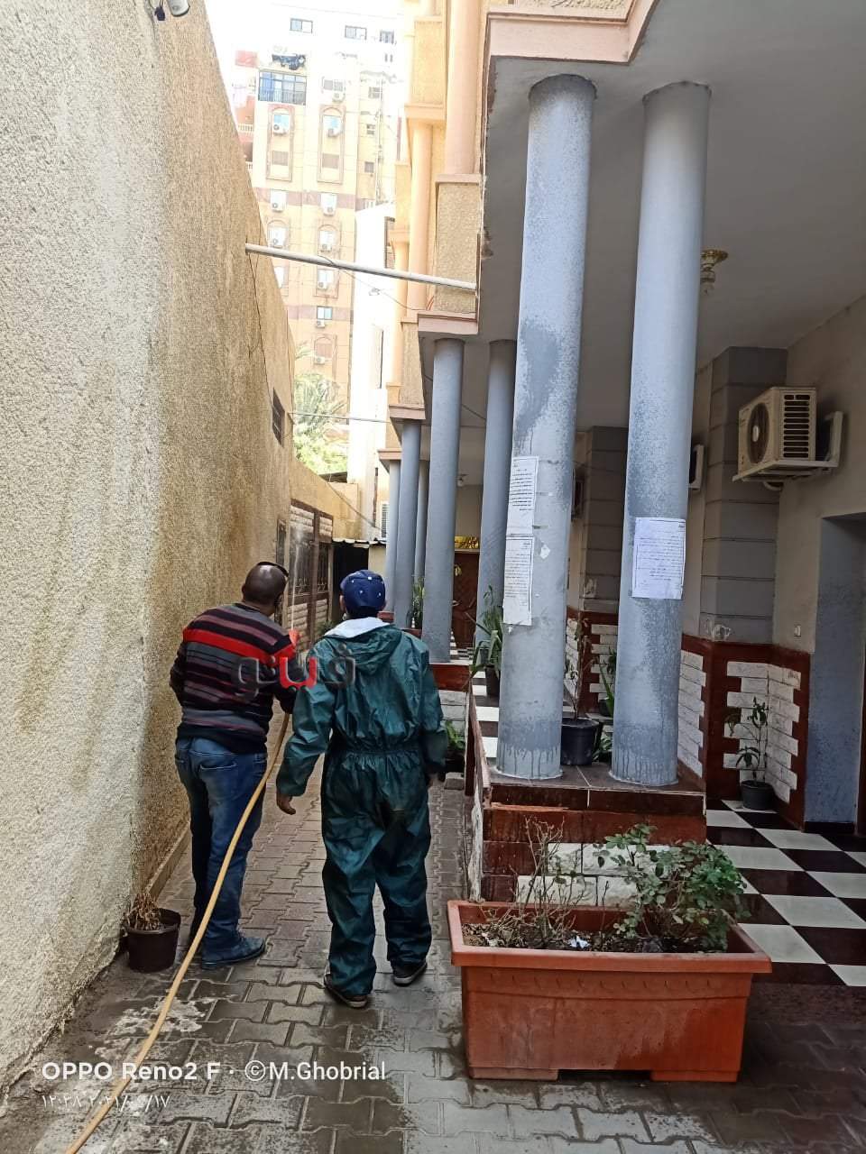 وكذلك في حي الطالبية تم تطهير وتعقيم طريق المريوطية وسوق الكنيسة الحضاري وعدد المنشأت الحكومية الشوارع والمساجد .