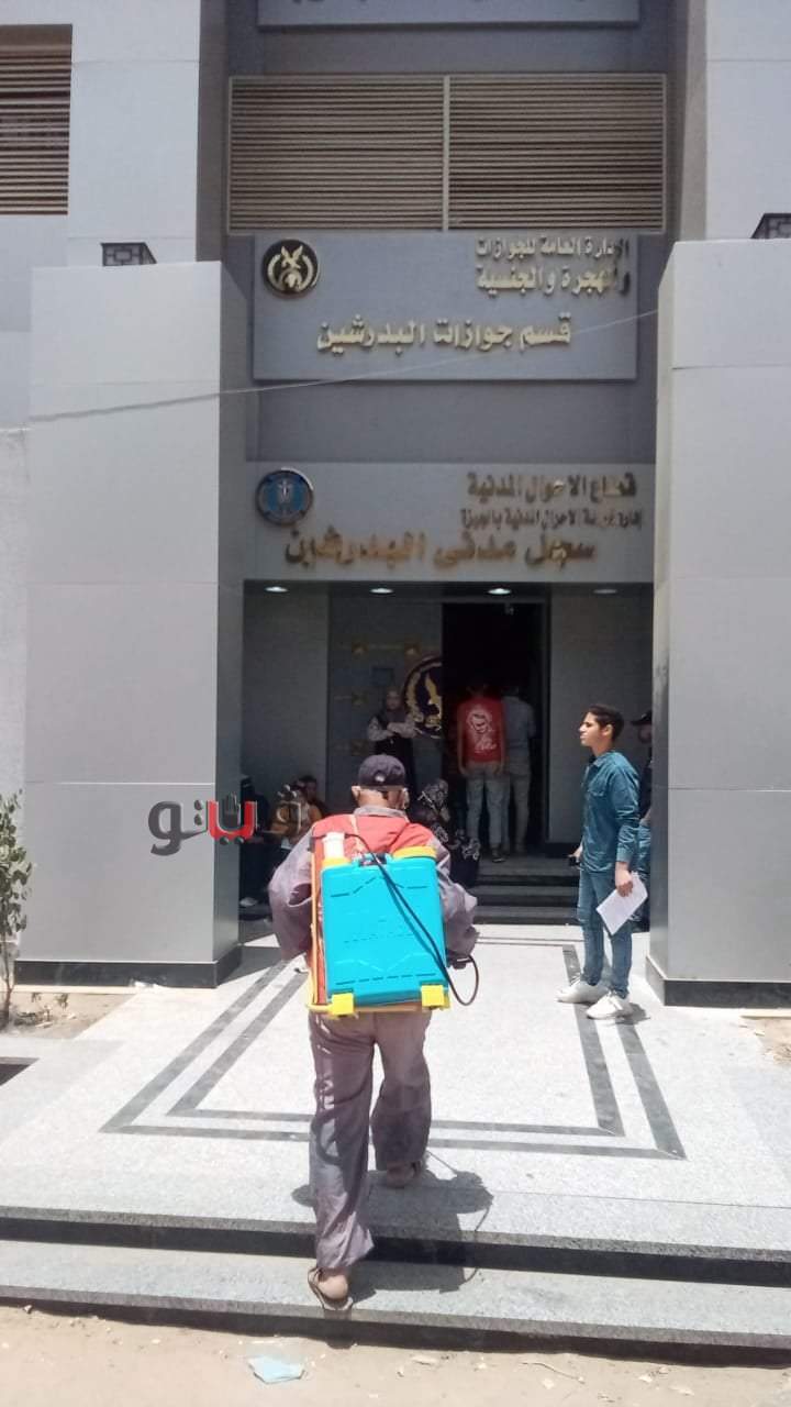وفي مركز ومدينة البدرشين تم تطهير وتعقيم متحف ميت رهينة ومكتب بريد البدرشين وسنترال البدرشين ومكتب خدمة المواطنين للتموين ومكتب التامينات والمعاشات ومكتب جوازات البدرشين .