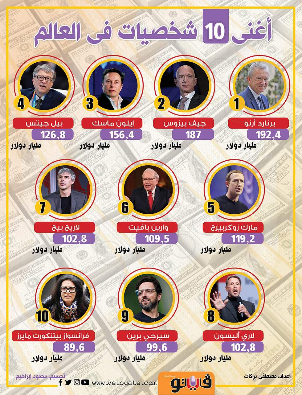 أغنى 10 شخصيات فى العالم | إنفو جراف الخميس 03/يونيو/2021 - 09:11 م 6/3/2021 9:11:24 PM اغنى 10 شخصيات في العالم شارك طباعة 18 حجم الخط أغنى 10 شخصيات فى العالم شارك طباعة اغنياء العالم اغنى رجال في العالم اغنى شخصيات في العالم