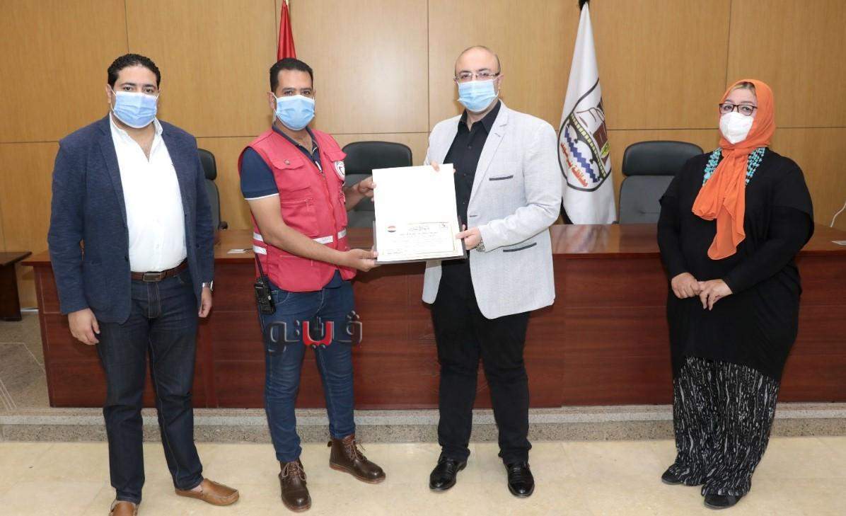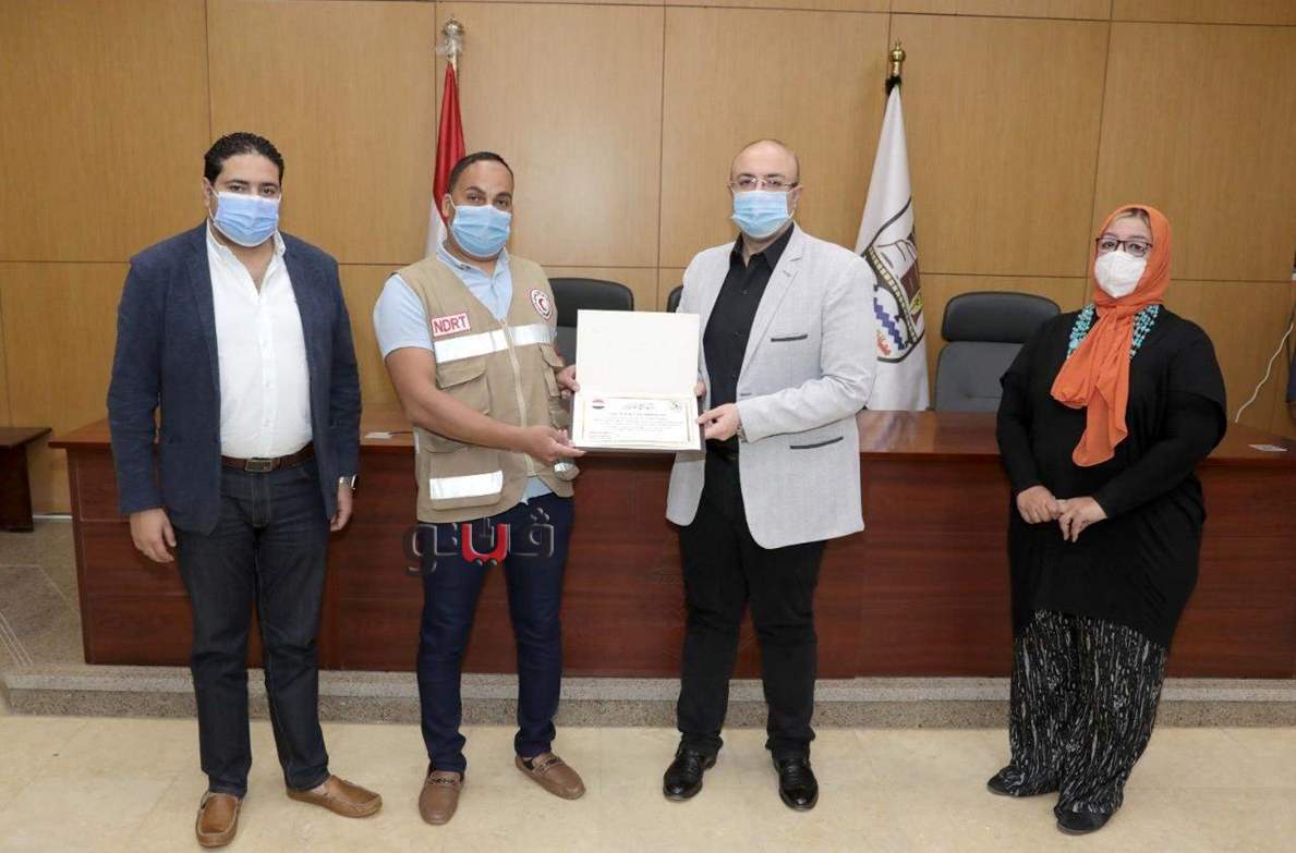 وسّلم المحافظ المكرمين شهادات تقدير، مشيداً بالدور البطولى والتضحيات التي يبذلها عناصر المنظومة الصحية بصفة عامة وقطاع الإسعاف بشكل خاص من منطلق واجبهم المهني والوطني، مؤكدا على أن كافة مكونات المنظومة الصحية يستحقون الإشادة والتكريم، خاصة وأنهم في مقدمة الصفوف ضمن خطة المحافظة لمجابهة تداعيات فيروس كورونا باعتبارهم جيش مصر الأبيض.