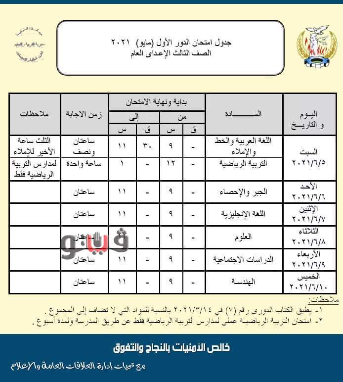 يأتي ذلك في إطار توجيهات اللواء إبراهيم أحمد أبو ليمون محافظ المنوفية بإنهاء الاستعدادات لامتحانات الشهادة الإعدادية والتى من المقرر بدايتها يوم السبت الموافق 5 يونيو الجاري وحتى الخميس 10 يونيو 2021 ، وتوفير المناخ المناسب للطلاب والتشديد علي اتخاذ كافة التدابير الوقائية والاحترازية لمواجهة انتشار فيروس كورونا للحفاظ علي صحة وسلامة أبنائنا الطلاب.