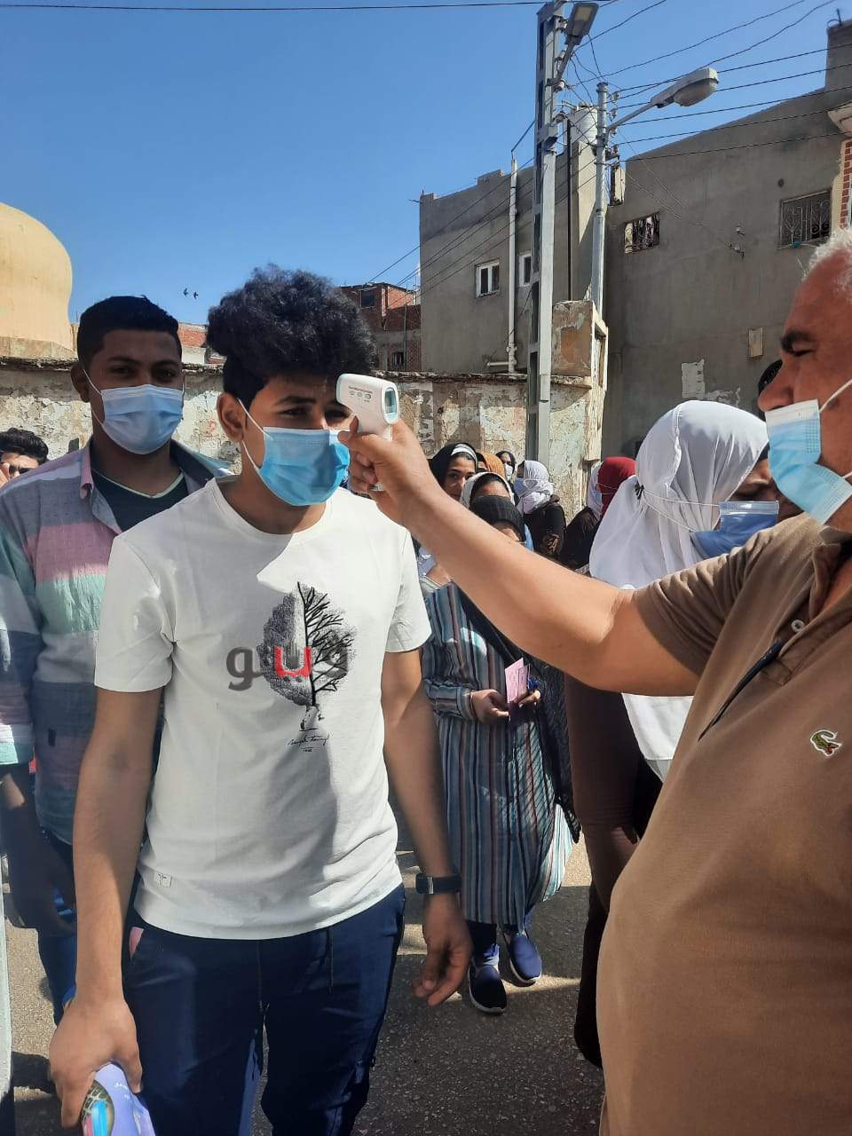 طلاب الشهادة الإعدادية يخضعون لكاشف الحرارة على أبواب اللجان بالدقهلية | صور