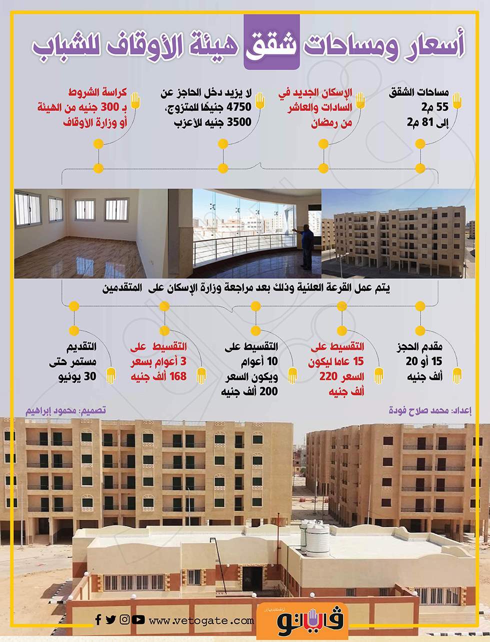 أسعار ومساحات شقق هيئة الأوقاف للشباب | إنفوجراف
