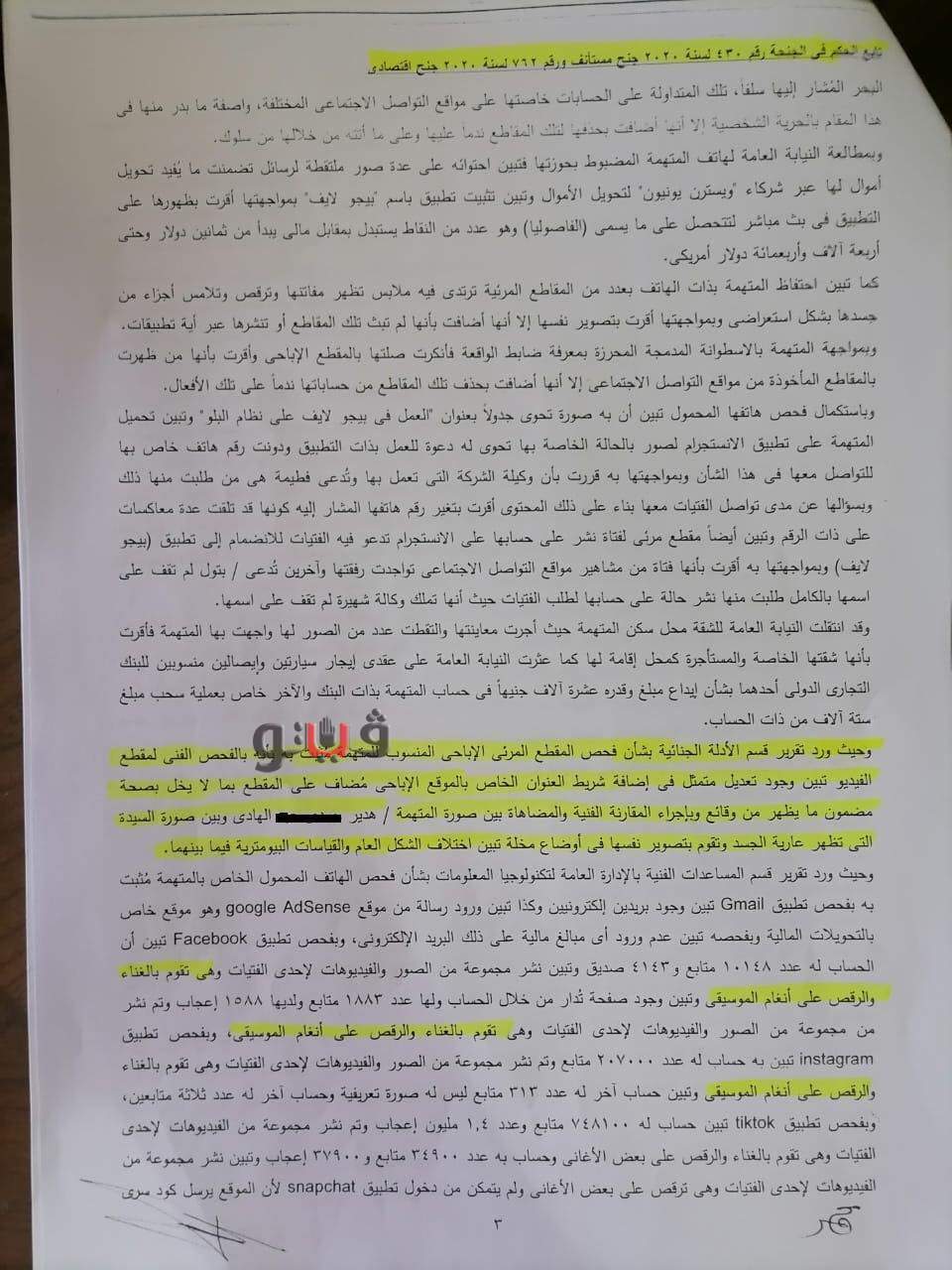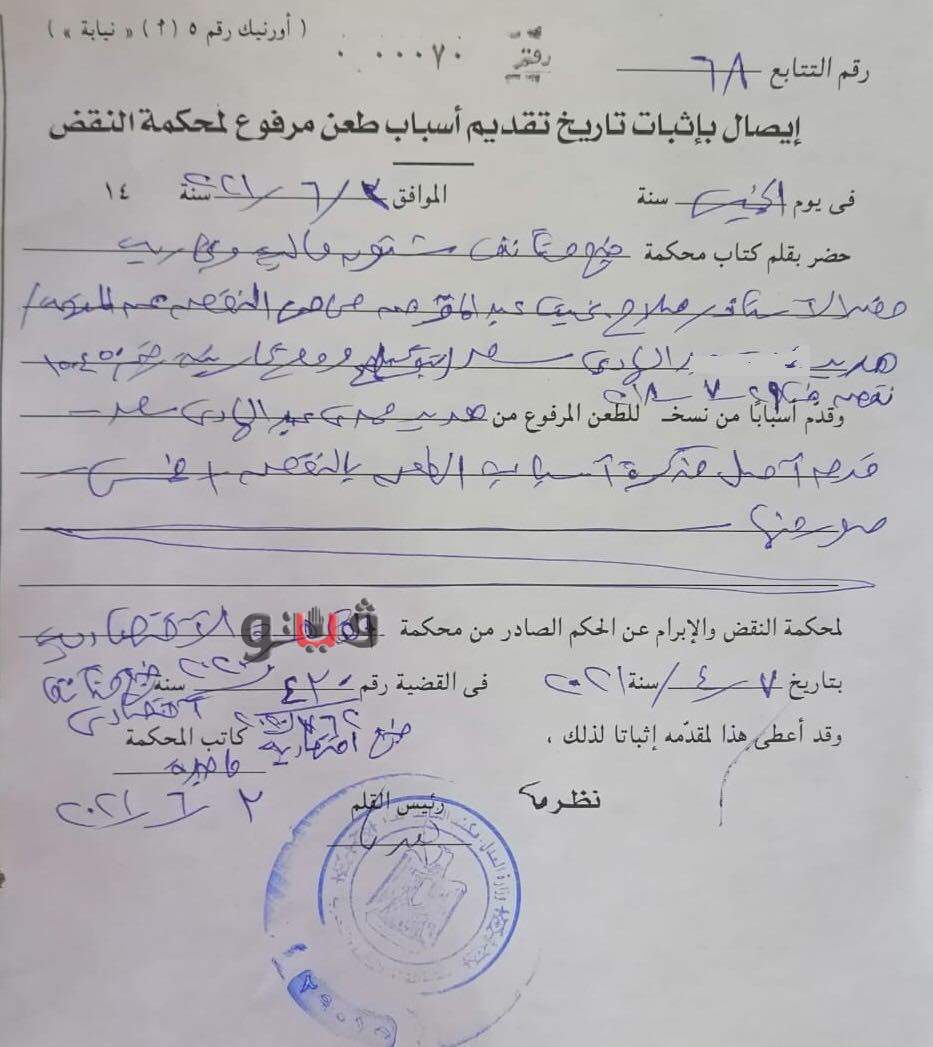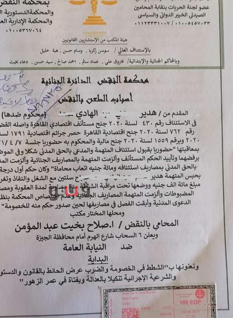 هاني سامح مذكرةً بأسباب الطعن بالنقض لهدير الهادي والمعروفة إعلاميا بـ فتاة "التيك توك"، تناولت الحكم الصادر ضدها وحملت