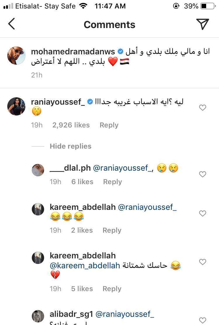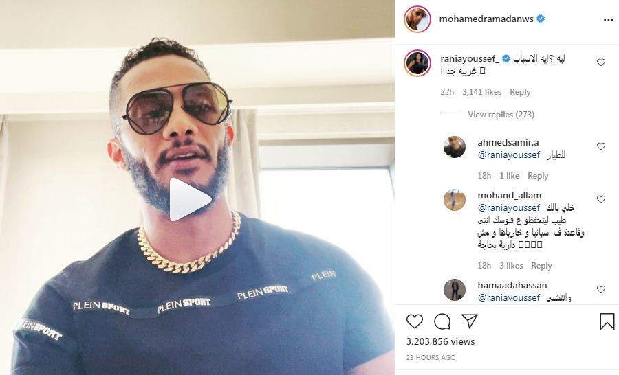 فى هذا السياق، فاجأت "رانيا" محمد رمضان بسؤال من خلال التعليق على الفيديو الذى أعلن فيه التحفظ على أمواله عبر "انستجرام" قائلة له :"ليه؟ ايه الاسباب غريبه جدا".