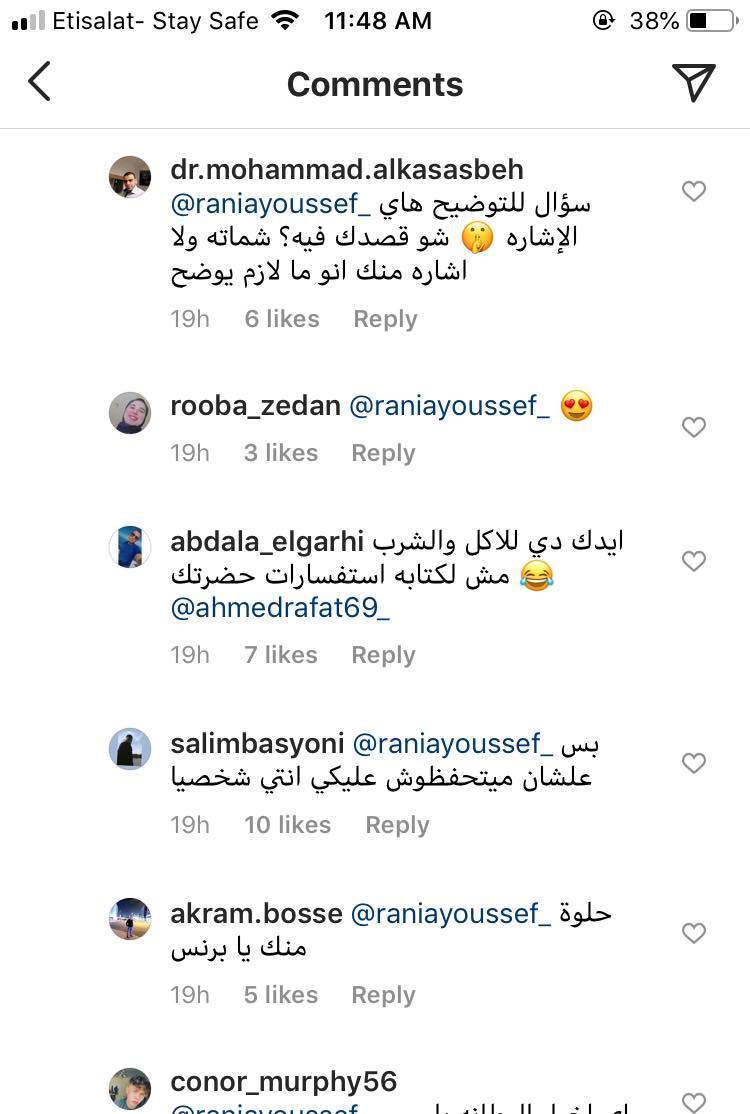 عقب طرح "رانيا" لهذا السؤال على "رمضان" انهالت التعليقات من الجمهور عليها، حيث اتهامها الكثير منهم بالشماته، وقال أحد المتابعين لها :"حاسك شمتانه"، وعلق آخر بقوله :"سؤال للتوضيح هي الإشارة شو قصدك فيها، شماته ولا إشارة منك إنو لازم توضيح"