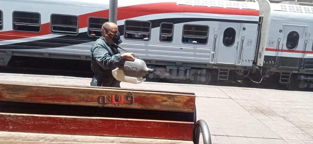 تعقيم محطة قطار الجيزة وقسم الشرطة بحي جنوب الجيزة |صور