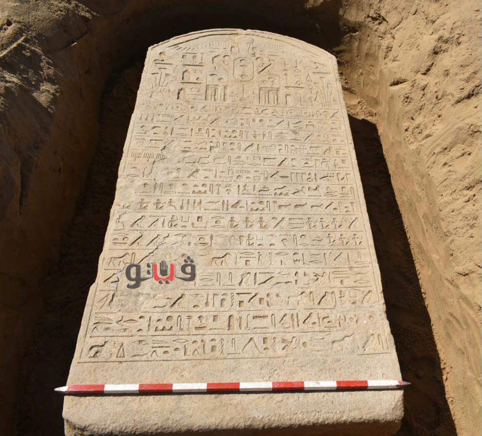 وأشار إلى أن اللوحة مصنوعة من الحجر الرملي ويعلوها قرص الشمس المجنح حفر عليها خرطوش للملك واح- ايب- رع- خامس ملوك الأسرة 26 و 15 سطراً من الكتابة الهيروغليفية.