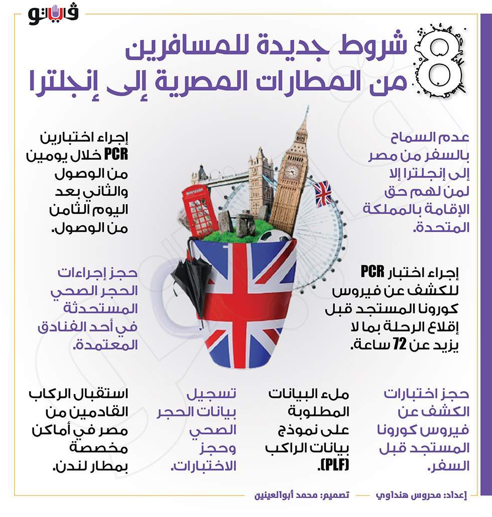 شروط جديدة للمسافرين من المطارات المصرية إلى إنجلترا | إنفوجراف