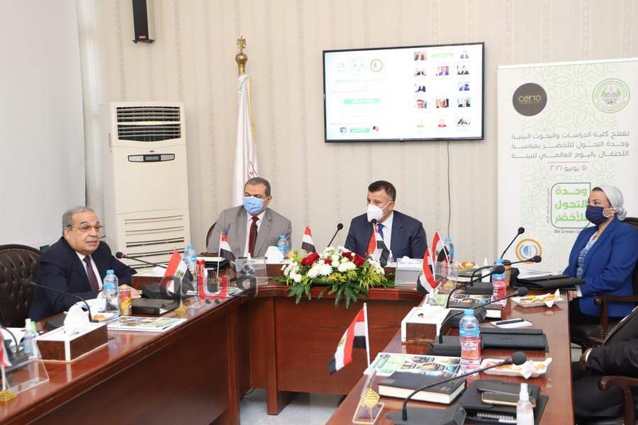 افتتح محمد سعفان وزير القوى العاملة، والدكتورة ياسمين فؤاد وزيرة البيئة ، واللواء محمد أحمد مرسي وزير الدولة للإنتاج الحربي ، والدكتور محمود المتيني رئيس جامعة عين شمس، اليوم السبت ، وحدة التحول الأخضر ، ومشروع شمس بى جرين لتدوير المخلفات ، بمقر كلية الدراسات العليا والبحوث البيئية بالجامعة ، فضلاً عن معرض المنتجات البيئية من إعادة الاستخدام وتدوير المخلفات، وذلك في إطار الاحتفال باليوم العالمي للبيئة .