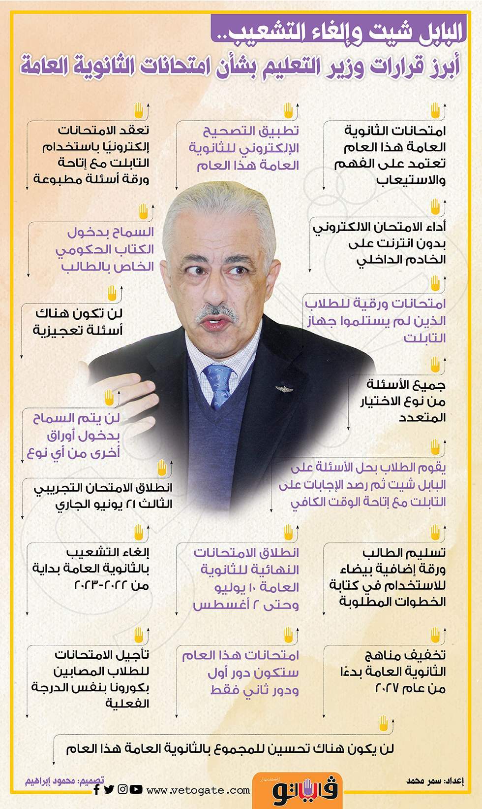 أبرز قرارات وزير التعليم حول امتحانات الثانوية العامة| إنفوجراف