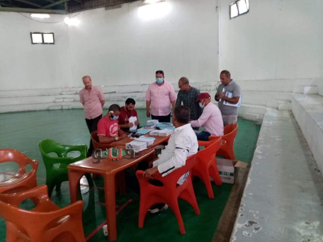 تفقد، اليوم السبت، علاء الشربيني وكيل وزارة الشباب والرياضة بالدقهلية صالة الإحماء المجاورة للصالة المغطاة بإستاد المنصورة الرياضي للاطمئنان على سير العمل في المكان الذي تم تخصيصه لمديرية الصحة لتسليم وتسلم كروت تسجيل لقاح كورونا .