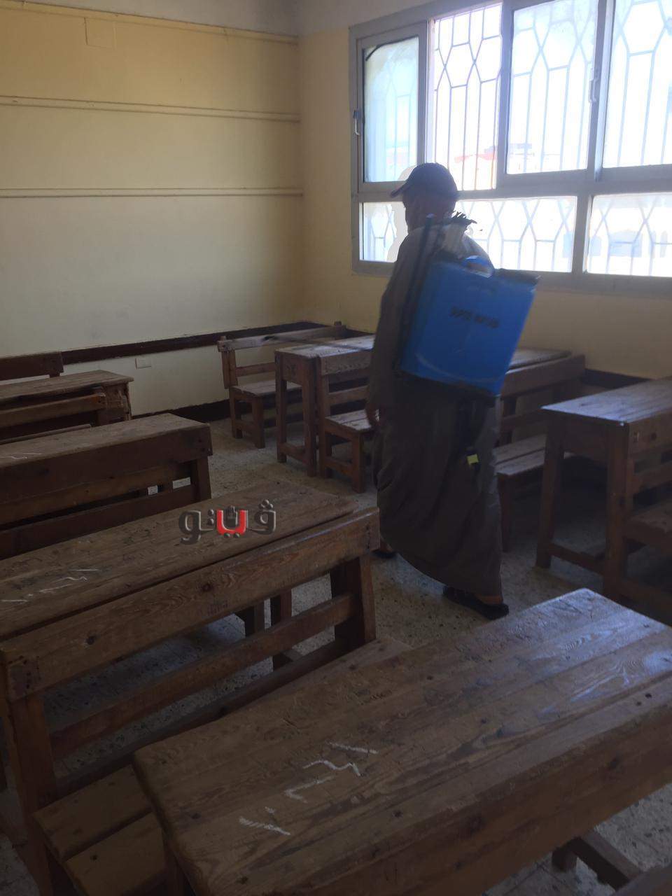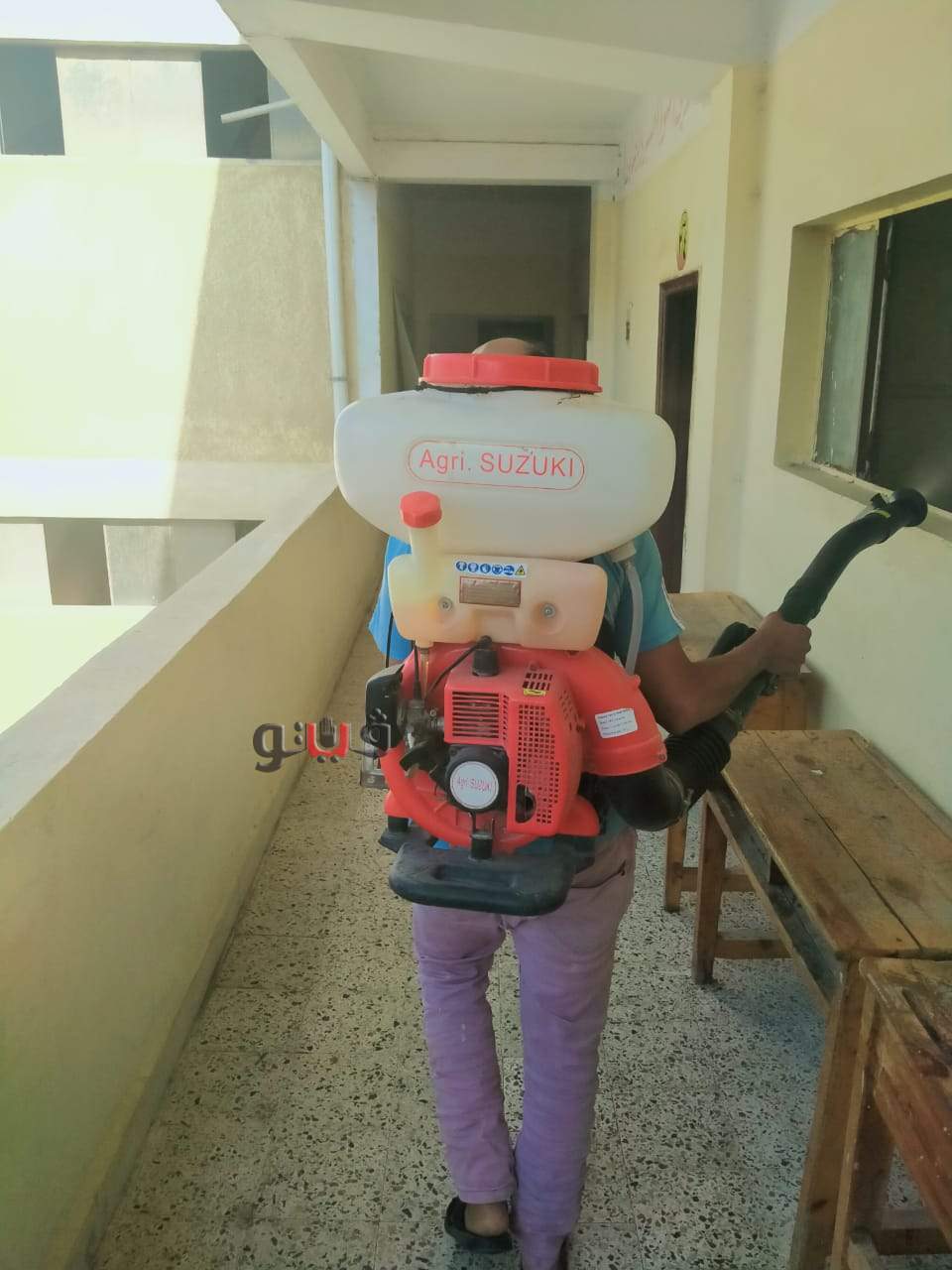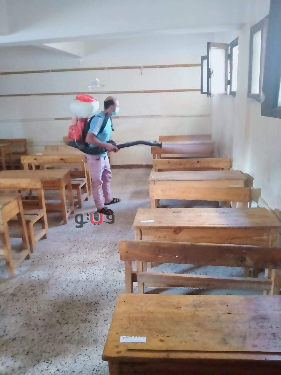 قبل الامتحان.. تعقيم وتطهير لجان الشهادة الإعدادية بالدقهلية | صور