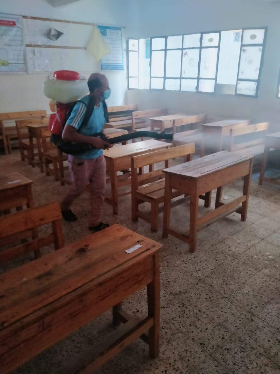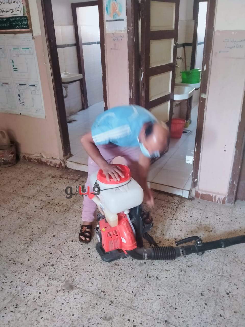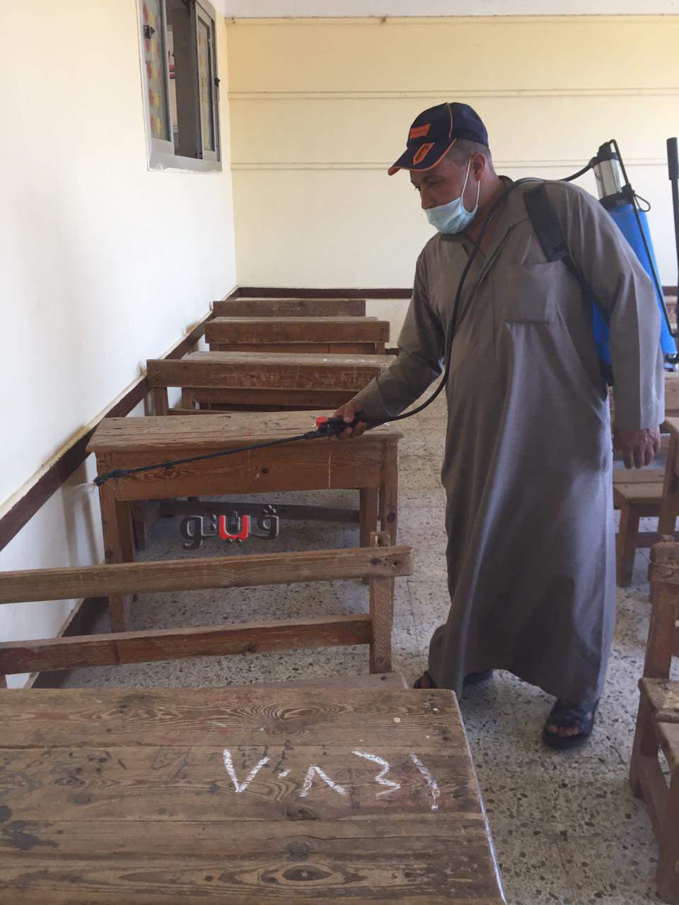 قبل الامتحان.. تعقيم وتطهير لجان الشهادة الإعدادية بالدقهلية | صور