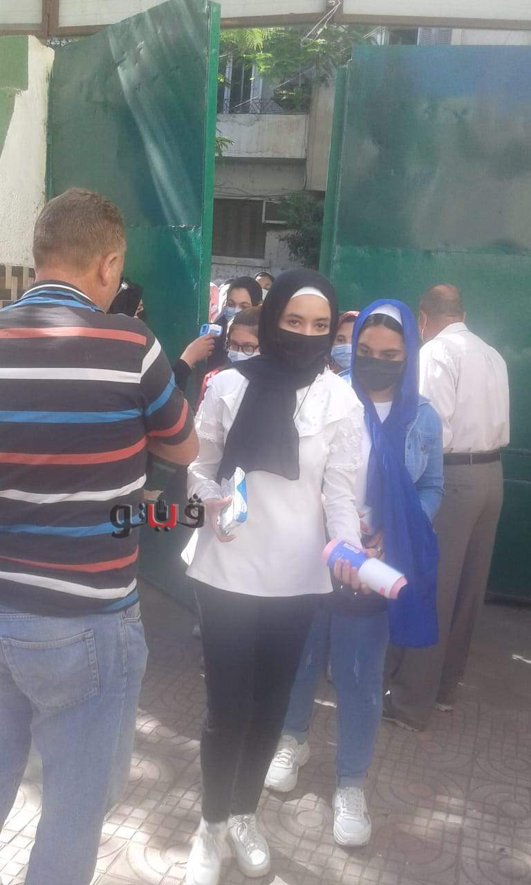 وحرصت الطالبات أمام اللجان على مراجعة المادة وسط تواجد أولياء الأمور كما عمل مسئولو اللجان على تنظيم دخول الطالبات والتشديد على ارتداء الكمامات الطبية والتباعد الاجتماعي بينهم لتجنب انتقال فيروس كورونا المستجد.