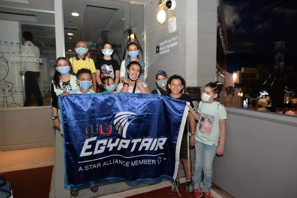 كما نظمت مصر للطيران جولة ترفيهية لمجموعة من أطفال مستشفى ٥٧٣٥٧ لزيارة مدينة كيدازنيا القاهرة لخوض تجربة سفر من خلال نموذج المحاكاة الموجود لمصرللطيران بالمدينة الترفيهية والذي يبدأ من دخول المطار وانهاء إجراءات السفر وختم الجوازات ثم الصعود للطائرة والتعامل مع الركب الطائر وأفراد الضيافة والاستماع الي تعليمات السلامة علي متن الطائرة وغيرها من مراحل السفر وذلك كجزء من الدعم العلمى والتربوى الحديث للأطفال عن طريق المحاكاة، لكي يخوضوا تجربة جديدة تساعدهم فى استكشاف عالم الطيران، وتزودهم بمعلومات مهمة عن مجال السفر، وقد حرصت مصر للطيران على توزيع هدايا تذكارية على الأطفال خلال الجولة.