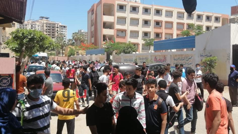 وارتدي الطلاب والطالبات الكمامة ورافق معظم الطلاب أولياء الأمور ، ومن المقرر بدء الإمتحان في الساعة التاسعة صباحا وحتي الحادية عشر صباحا اي يستغرق الإمتحان ساعنين متواصلتين .