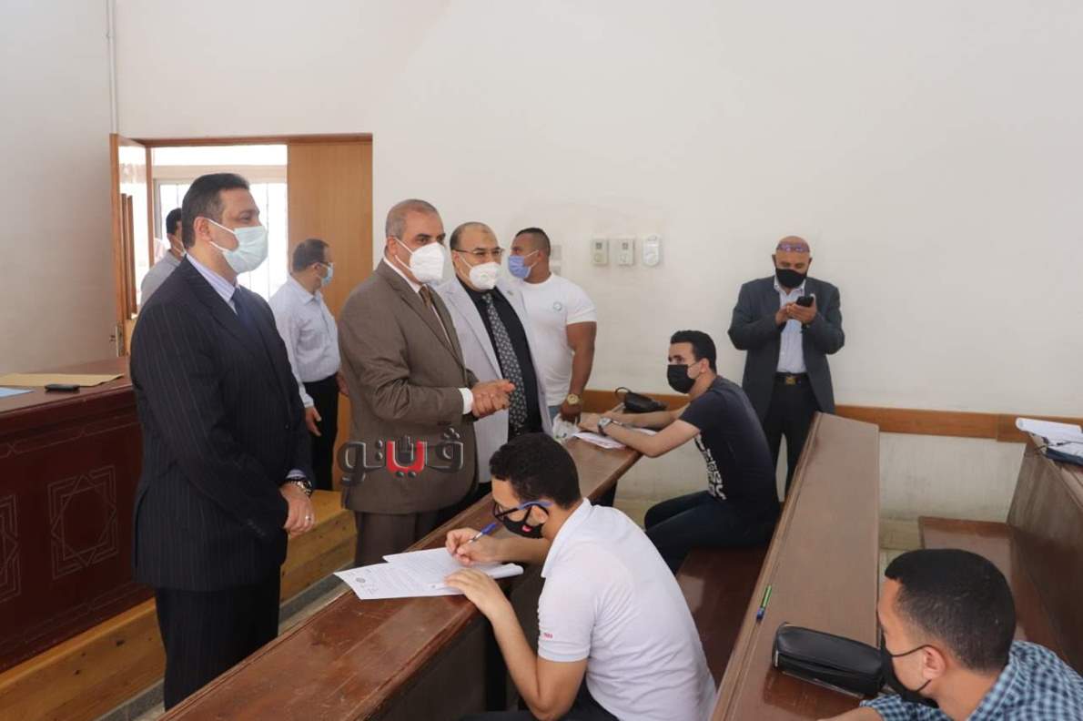 ووقف رئيس الجامعة على ما قامت به الكليتين من عمليات رش وتطهير وتعقيم لجميع اللجان؛ حرصًا على سلامة الجميع، كما تأكد فضيلته من وجود لجان خاصة للعزل؛ تحسبًا لأي ظروف، وتابع رئيس الجامعة آليات إدارة العملية الامتحانية داخل كل كلية بما يتناسب وعدد الطلاب، والمواد الدراسية بكل كلية، وتأكد من أماكن توزيع لجان الامتحانات، وجاهزية الكنترولات وأعضائها على مدار اليوم، بجانب وجود أستاذ المادة التي يؤدي الطلاب الامتحان فيها.