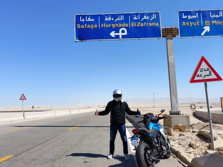 قطع الرحالة المصري علي عبده حامل اللقب العالمي في موسوعة "جينيس" للأرقام القياسية ومؤسس مبادرة "100 مصر" رحلة لمسافة ألف كيلومتر خلال يوم على متن دراجة كهربائية.
