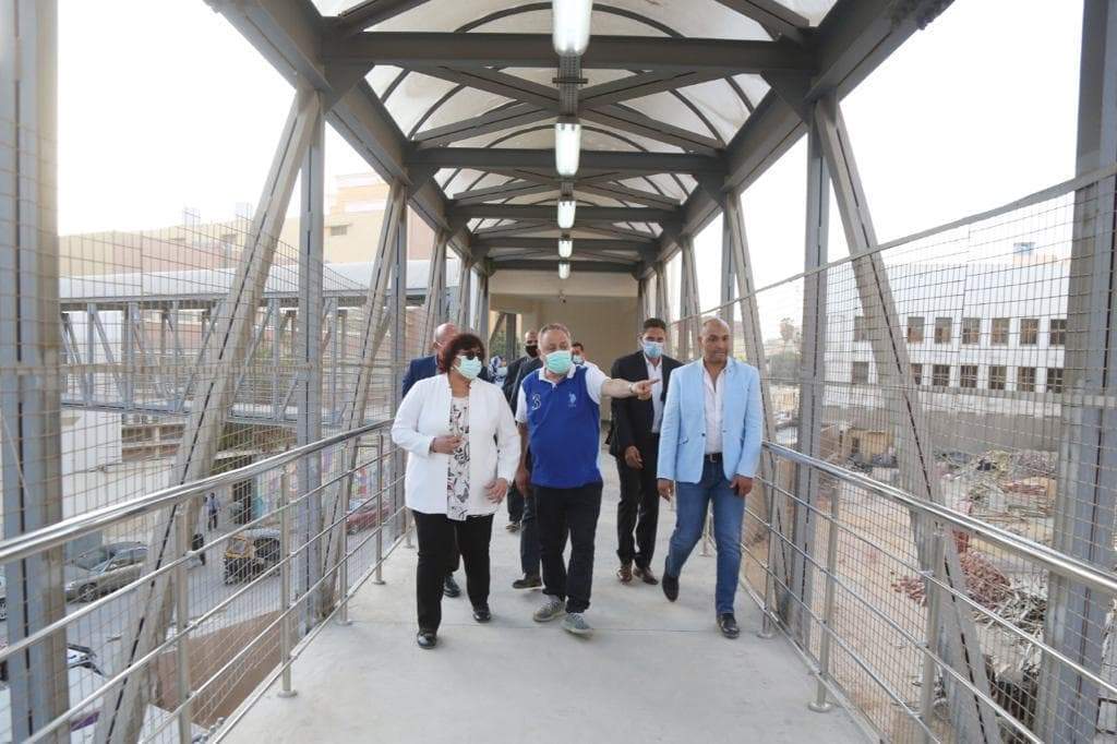 كما تفقدت الكوبري الرابط بين حرمي الاكاديمية ومبانيها القديمة والجديدة وعدد من منافذ التى تم تخصيصها لمنتجات الصناعات الثقافية ومشروع صنايعية مصر والجاري تنفيذها ، و تابعت سير اعمال انشاء المسرح الروماني الجديد.