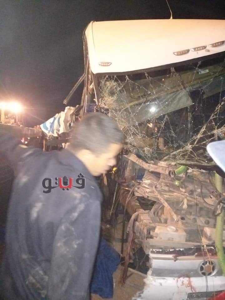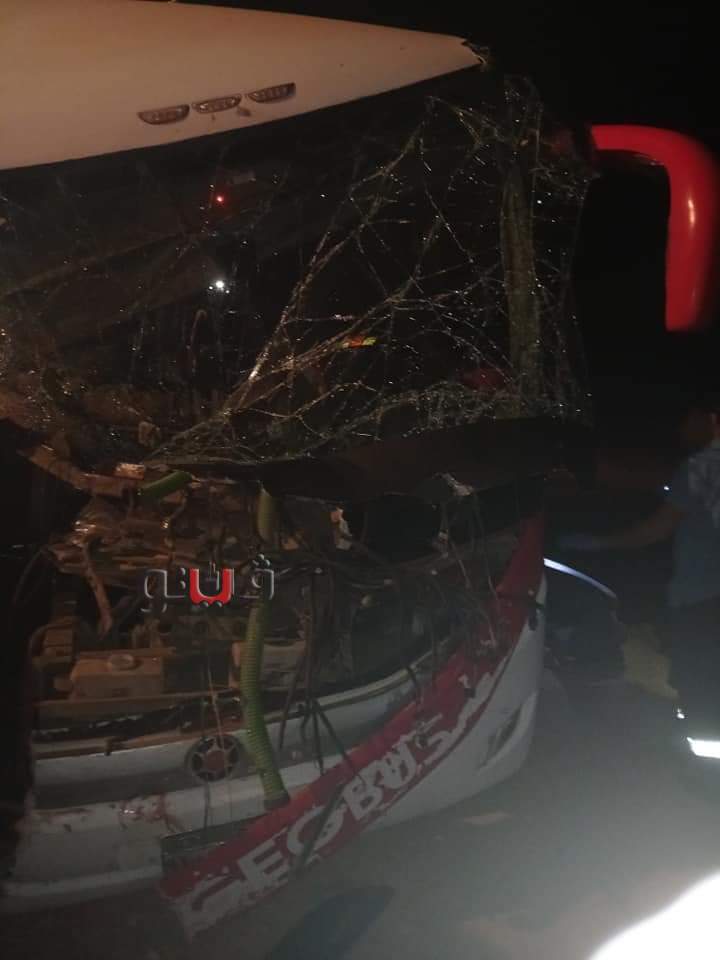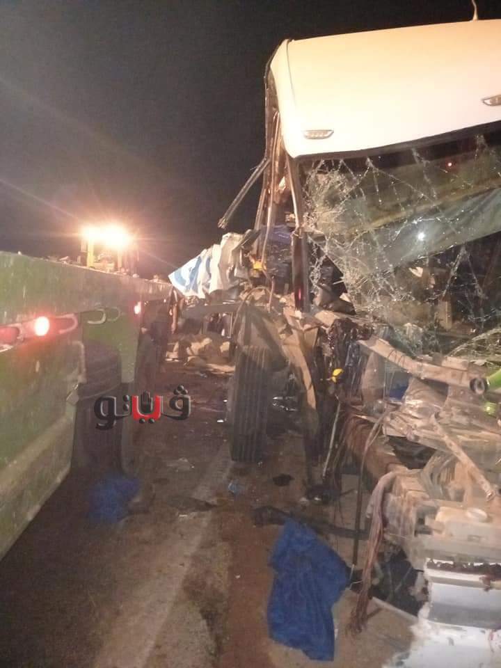 اللقطات الأولى لحادث التصادم الدموي بين أتوبيس وسيارة نقل بالوادي الجديد | فيديو وصور