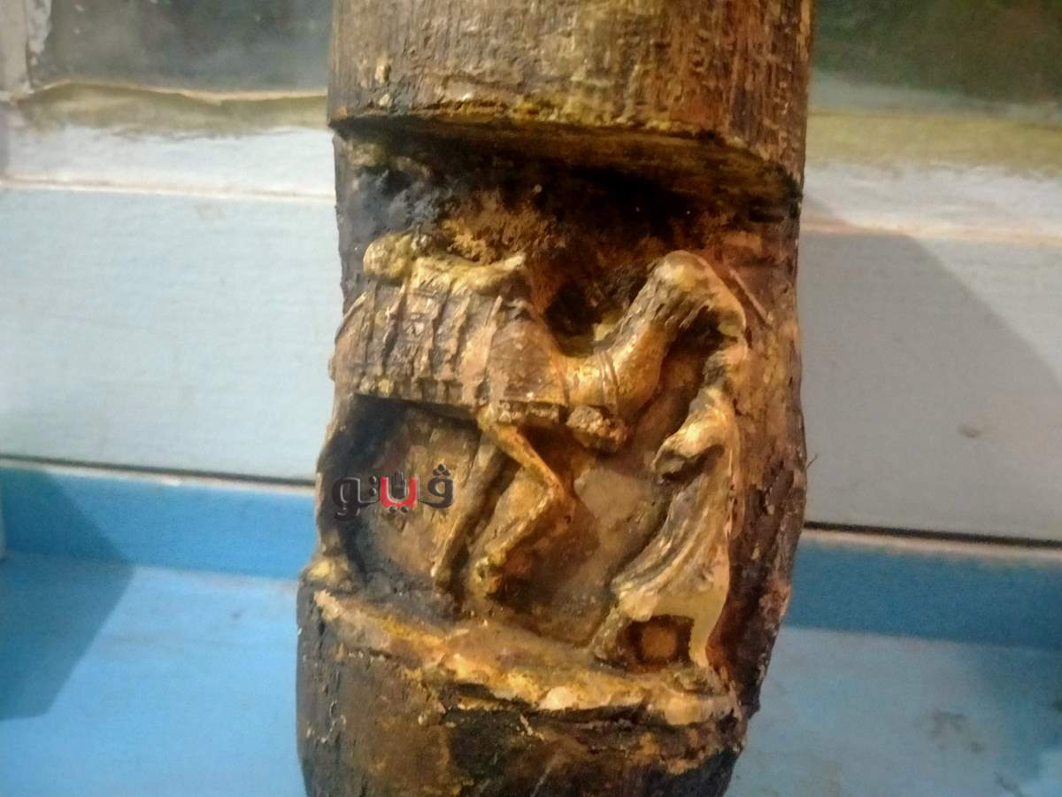 الجمل يجيد النحت داخل قطع من الأشجار والخشب وقام بنحت 500 تمثال من تلك النوعية أبرزهم الكاتب المصرى وجمل يقوده صاحبه فى الصحراء، ويمضى 10 ساعات حتى ينتهى من المنحوتة الواحدة من هذه النوعية