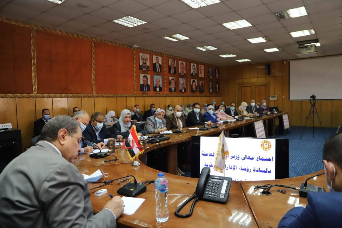 ومتابعة تطبيق الإجراءات الاحترازية للوقاية من انتشار فيروس كورونا المستجد بالوزارة ومديريات القوي العاملة بالمحافظات.