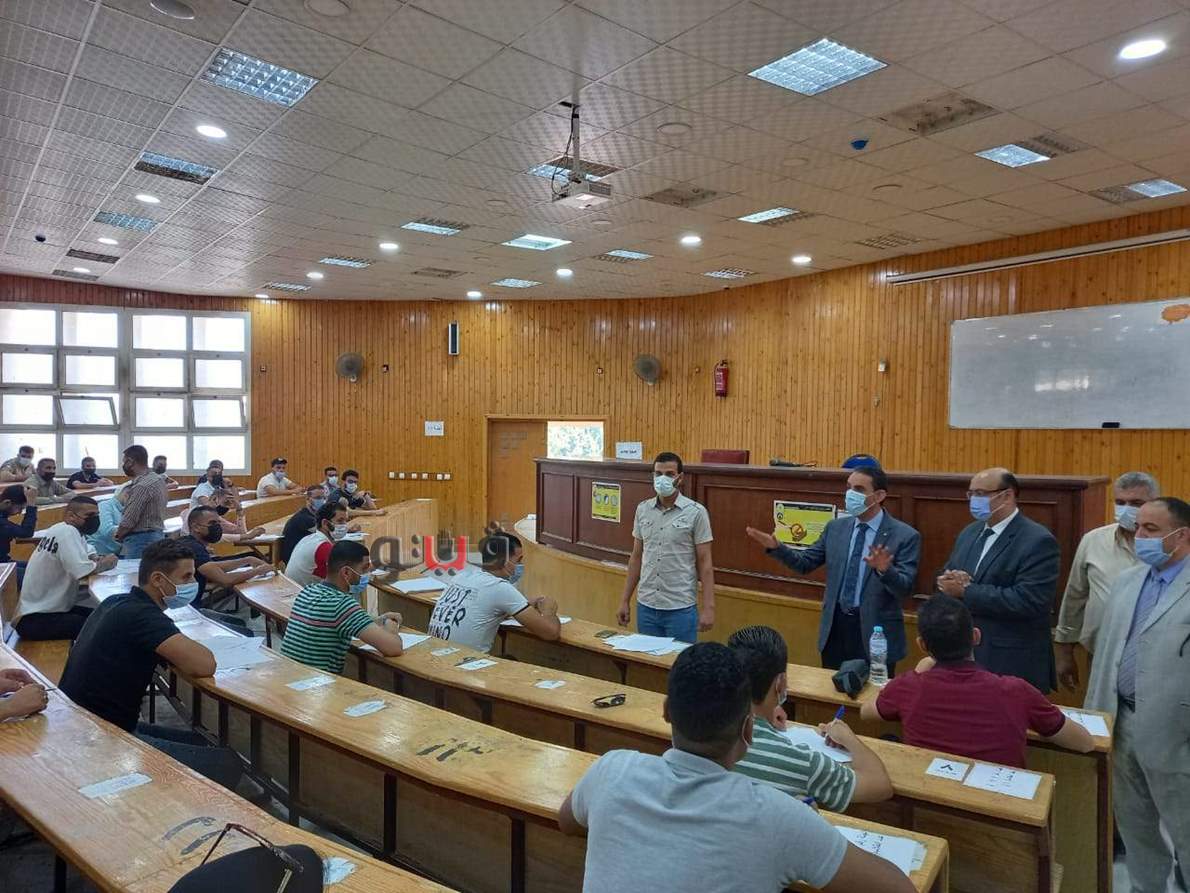 وتفقد نائب رئيس الجامعة قاعات ومدرجات الامتحانات والأماكن المخصصة للاشتباه في وجود حالات مرضيه والعيادة الطبية.