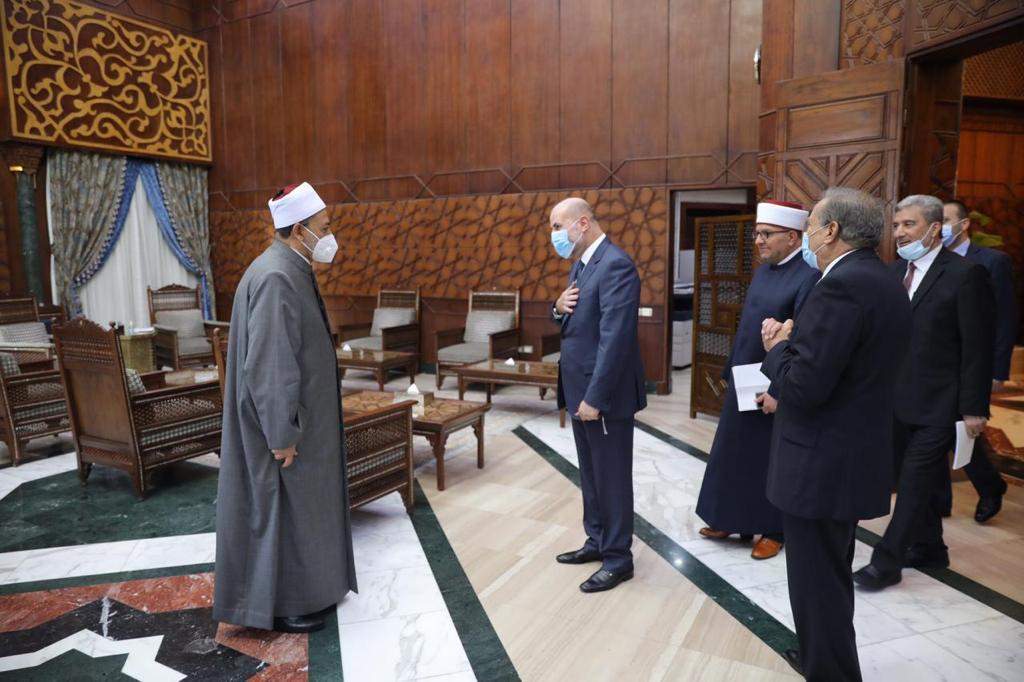 استقبل فضيلة الإمام الأكبر الدكتور أحمد الطيب، شيخ الأزهر الشريف، اليوم الثلاثاء بمقر مشيخة الأزهر، وفدًا فلسطينيًّا رسميًّا برئاسة الدكتور محمود الهباش، قاضي قضاة فلسطين ومستشار الرئيس الفلسطيني للشؤون الدينية والعلاقات الإسلامية.
