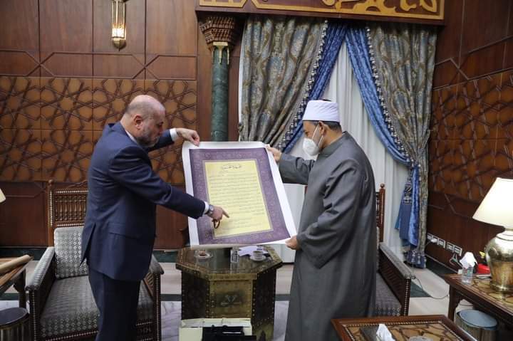 بخط عمر بن الخطاب.. هدية خاصة من الرئيس الفلسطيني لشيخ الأزهر | صورة