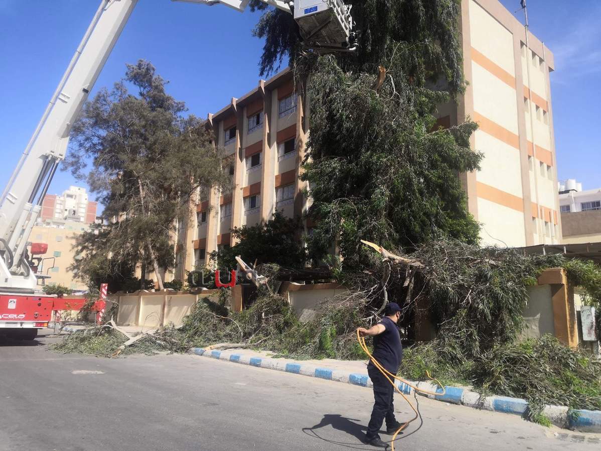 ودفعت قوات الحماية المدنية بسياراتها بعد تلقي بلاغ من احدي المدارس بتواجد شجرة كبيرة تكاد العوام الجوية سقوطها علي الطلاب او العاملين بالمدرسة.
